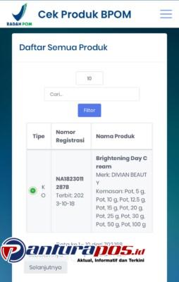 Penyalahgunaan Nomor BPOM: Menggunakan satu nomor notifikasi yang sama (NA18230112878), yang terdaftar atas nama produk dari merek lain yakni DIVIAN BEAUTY Brightening Day Cream.