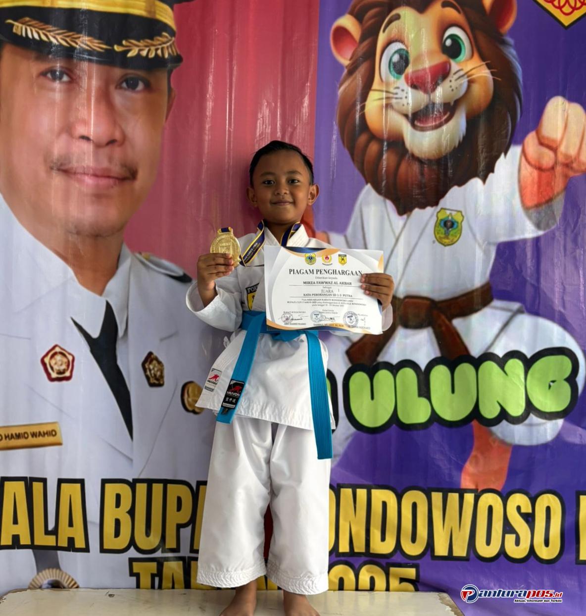 Salah satu atlet muda yang turut mengharumkan nama Situbondo adalah Mirza Fawwas Al Akbar, putra dari pasangan Bapak Hendriyansyah, S.H., M.H. dan Ibu Meira Karya Dewi Lustia, S.Pd. Mirza sukses meraih Juara 1 dalam kategori Festival Kata Perorangan SD Kelas 1–3 Putra, setelah menampilkan teknik dan semangat bertanding yang luar biasa.