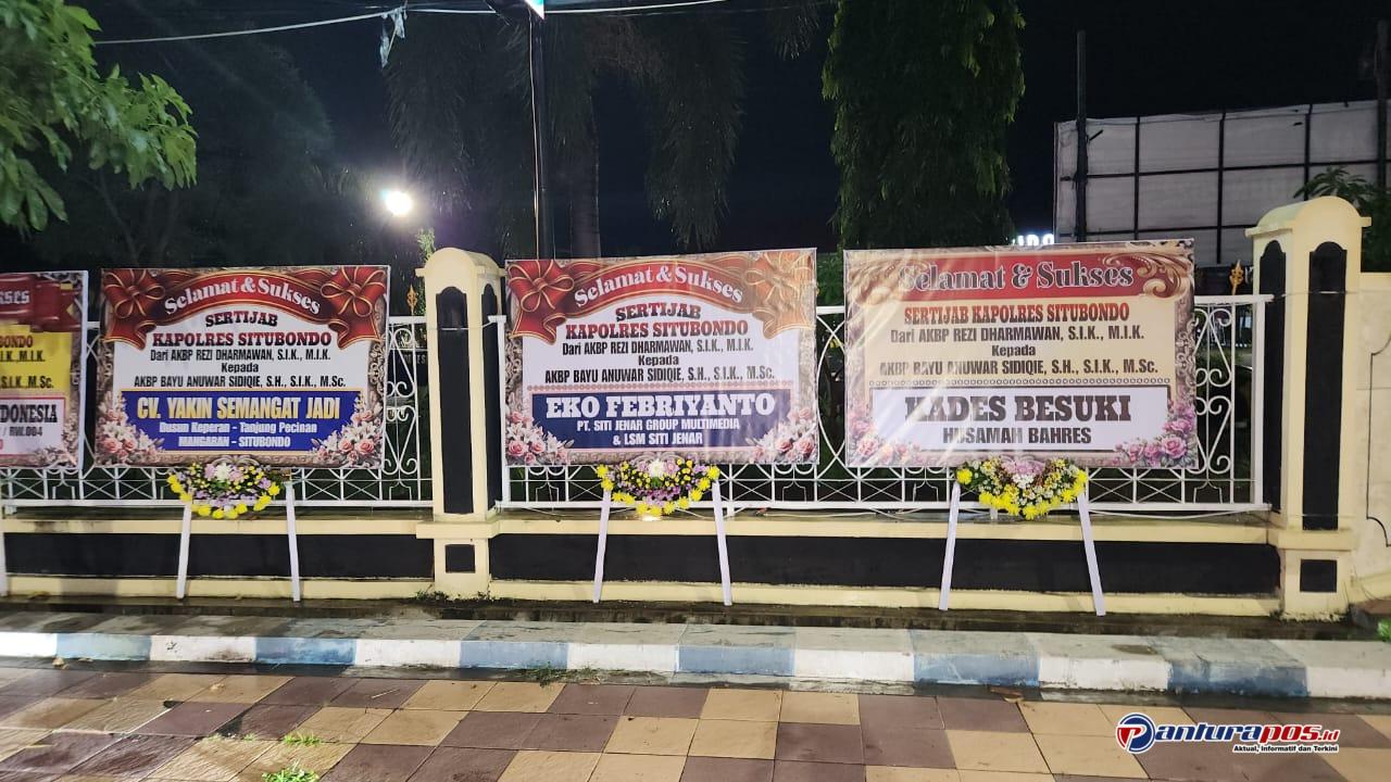 Pantauan awak media menunjukkan, suasana di halaman Markas Komando (Mako) Polres Situbondo tampak semarak sejak beberapa hari terakhir. Puluhan karangan bunga ucapan selamat atas Serah Terima Jabatan (Sertijab) Kapolres berjajar rapi memenuhi hampir seluruh area Mapolres Situbondo. Mulai dari gerbang pintu masuk, Lapangan Apel, depan gedung utama Mako, hingga gerbang pintu keluar, tampak deretan karangan bunga dari berbagai pihak.