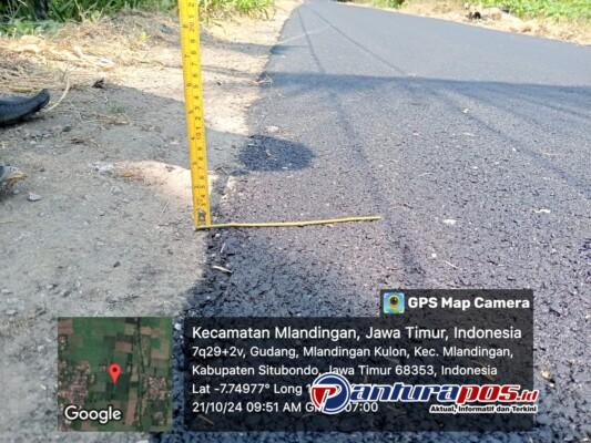 bahwa kualitas aspal yang gembor digunakan terlihat buruk dan tidak merata. Ketebalan jalan yang seharusnya memiliki standar tertentu justru bervariasi, dengan beberapa bagian hanya mencapai 2 cm dan bahkan ada yang hanya setebal 1,5 cm. Kondisi ini menimbulkan kekhawatiran akan daya tahan jalan tersebut, terutama saat musim hujan tiba, yang bisa mempercepat kerusakan.“Kami melihat sendiri, lapisan aspal yang dibentangkan tidak merata dan sangat tipis di beberapa titik. Kami khawatir jalan ini tidak akan bertahan lama,” ungkap seorang warga Mlandingan yang tak ingin disebutkan namanya.